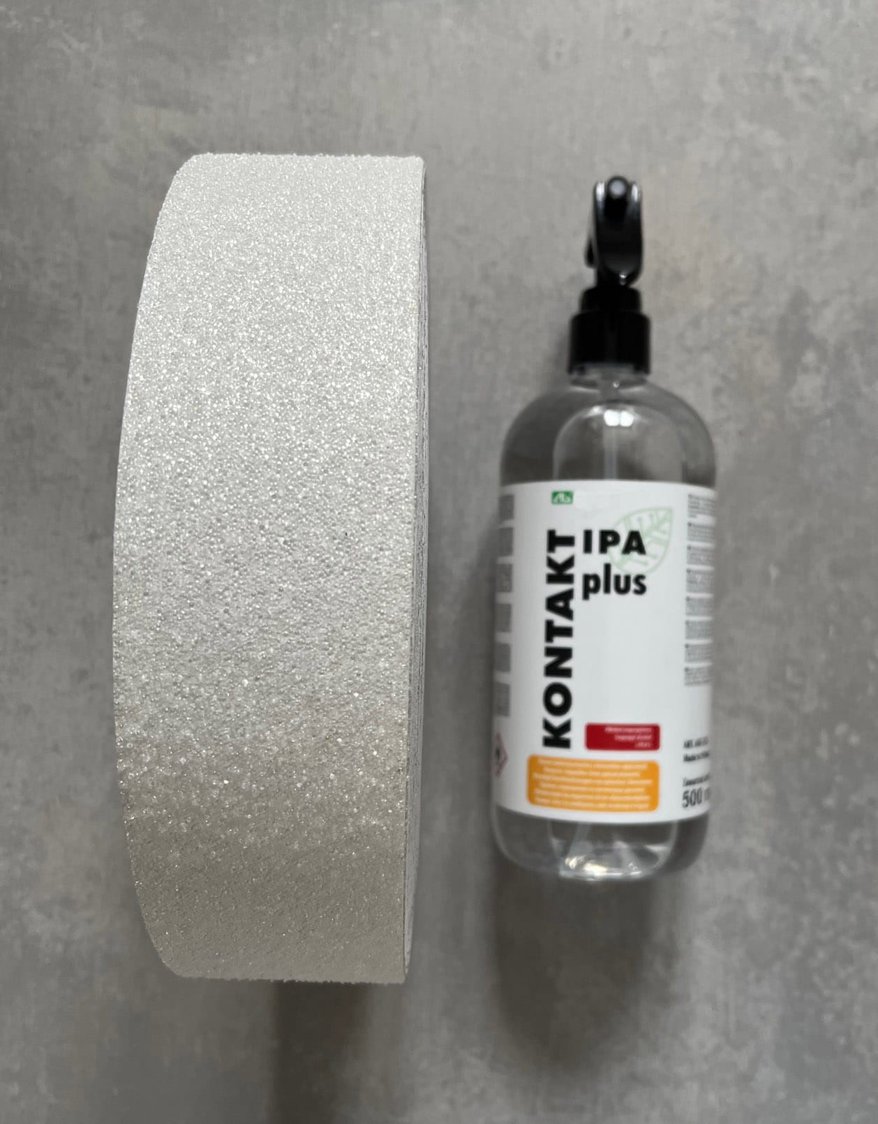 Wygodna butelka ze spryskiwaczem nadaje się idealnie do odtłuszczenia powierzchni przed przyklejeniem taśmy antypoślizgowej lub taśm do oznacznia.