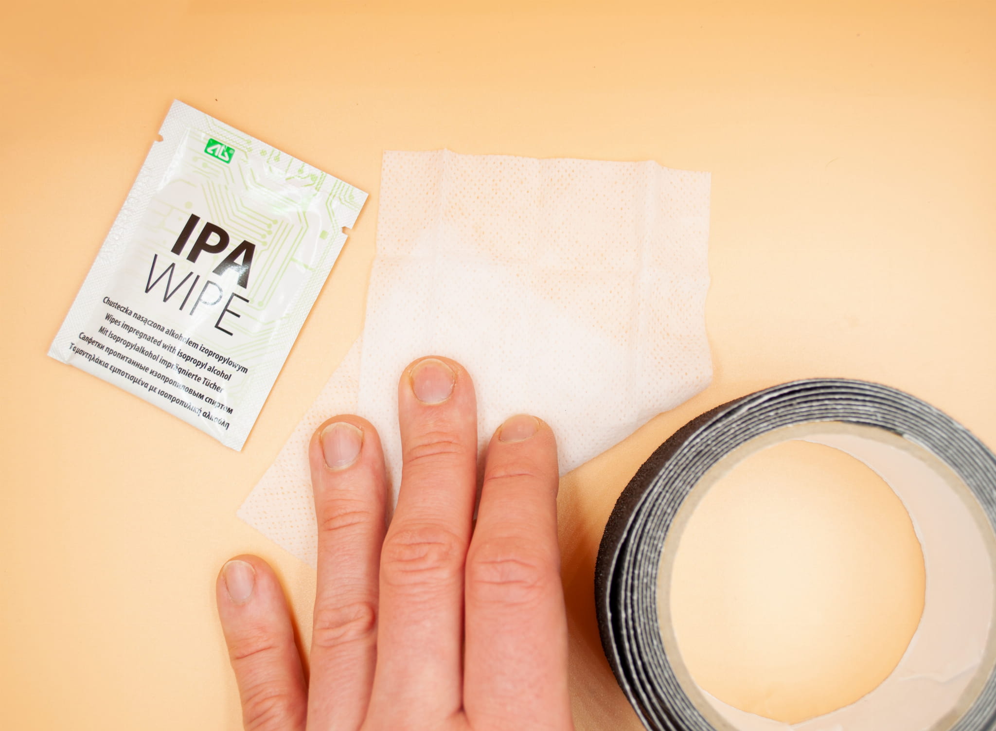 IPA Wipe - Ściereczka do odtłuszczania i gruntownego wyczyszczenia powierzchni przed przyklejeniem taśmy antypoślizgowej.