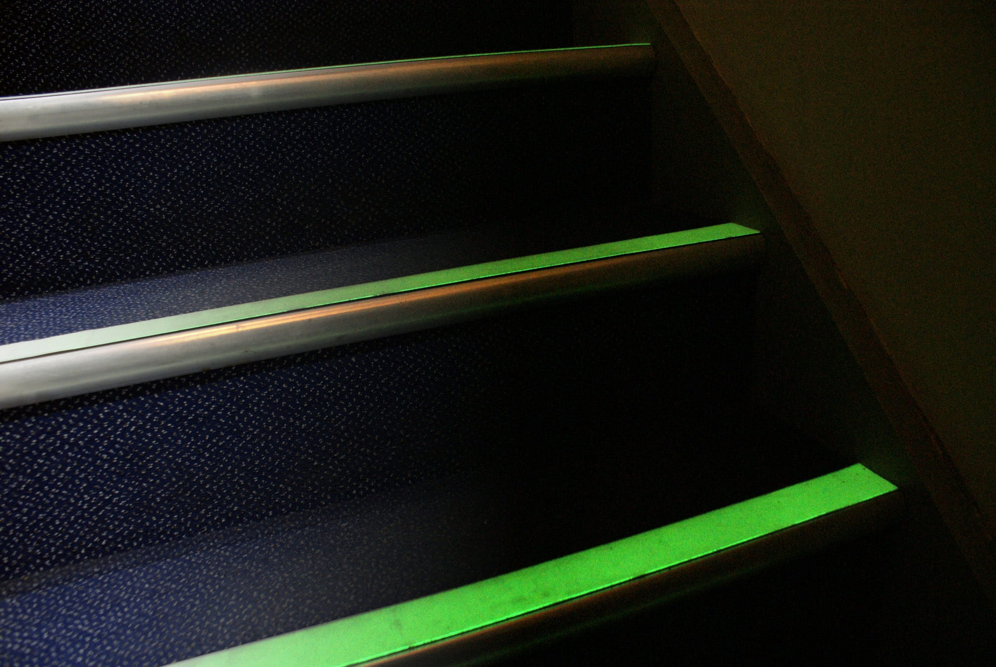 Świecąca taśma antypoślizgowa to idealnie rozwiązanie do oznaczenia dróg ewakuacyjnych.