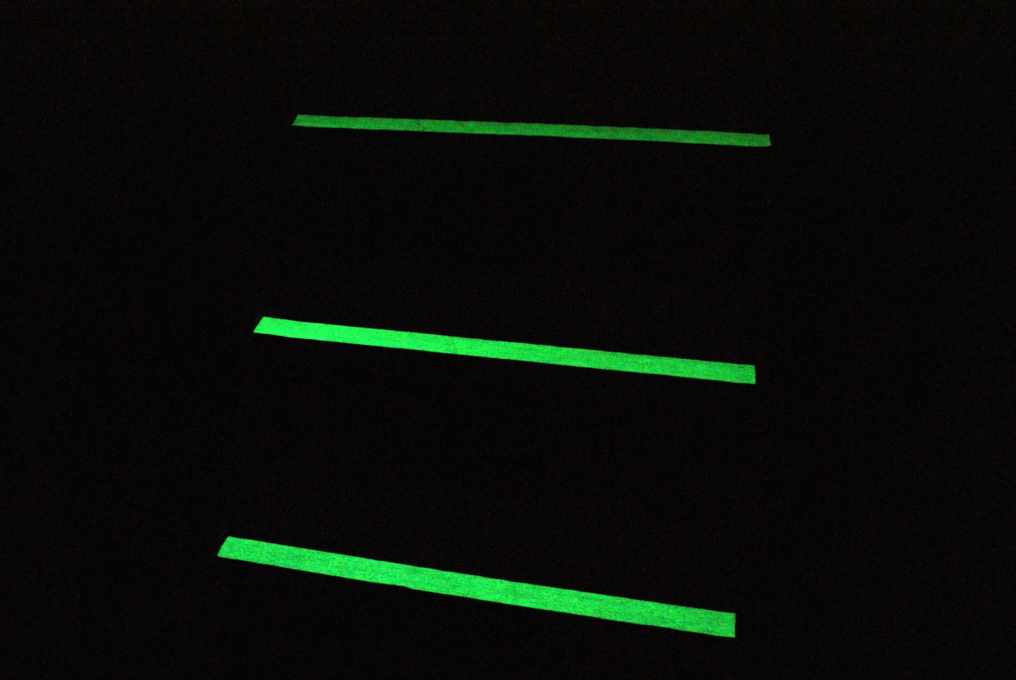 W ciągu dnia świecąca w ciemności taśma antypoślizgowa ma bardzo łagodny zielonkawy odcień, w ciemności lub przy braku światła emituje jasne, białe światło.